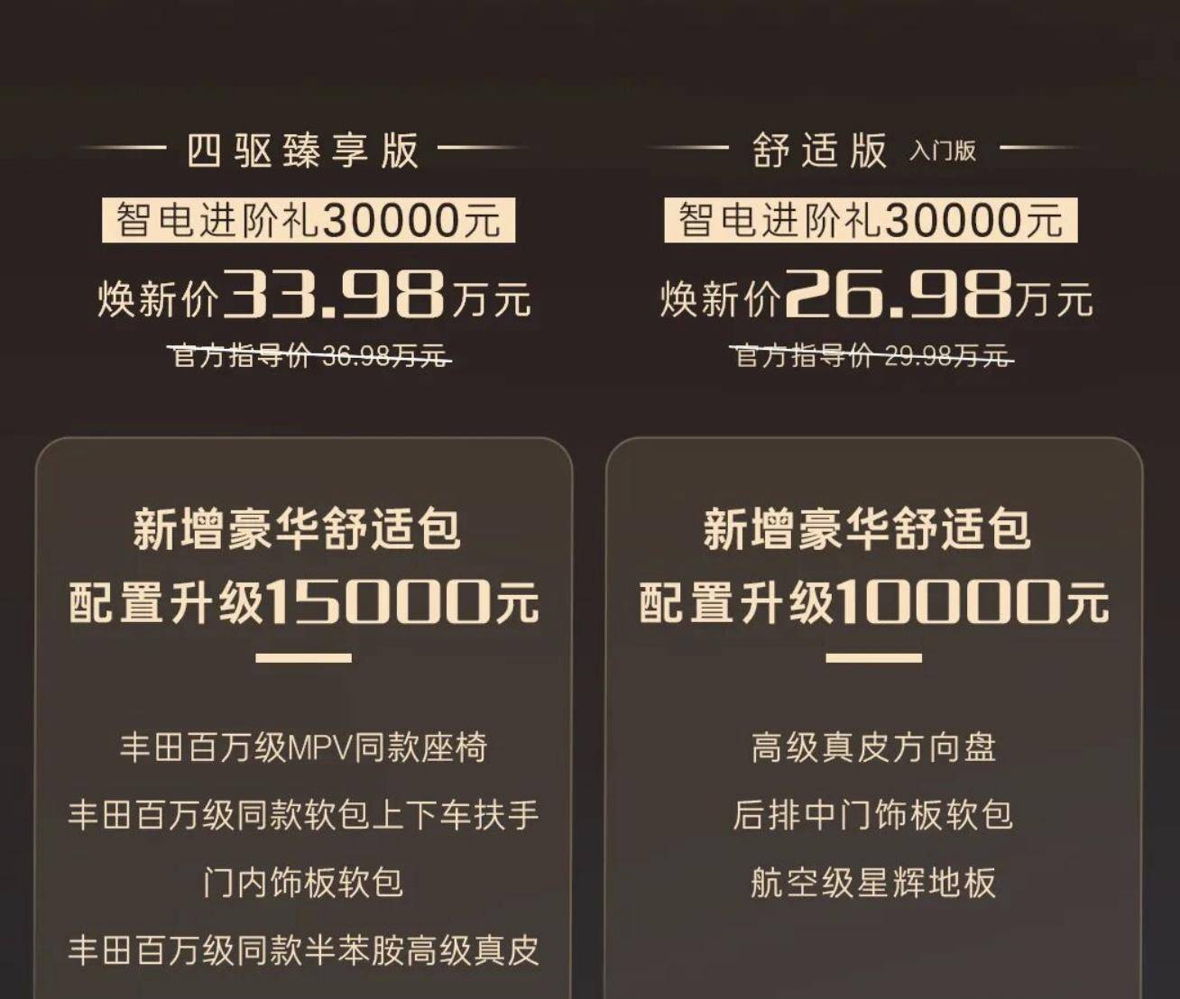 對于有商務需求的用戶,尊貴版和臻享尊貴版提供了更豐富的配置。尊貴版增加了第二排加熱、通風功能以及360度全景影像和透明底盤,但31.98萬元的價格性價比略顯不足。而臻享尊貴版則被譽為“小小埃爾法”,其第二排頭等艙座椅配備一體式扶手、頭枕和16點式按摩功能,煥新價僅32.98萬元,成為商務接待的理想選擇。