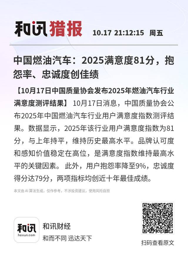 中國(guó)質(zhì)量協(xié)會(huì)最新發(fā)布的2025年燃油汽車行業(yè)用戶滿意度測(cè)評(píng)報(bào)告顯示,該行業(yè)用戶滿意度指數(shù)連續(xù)第二年保持在81分的歷史高位,品牌認(rèn)可度與產(chǎn)品感知價(jià)值成為支撐這一成績(jī)的核心要素。