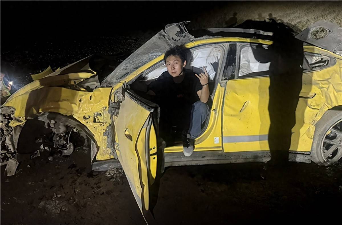 車主在社交平臺發布的視頻顯示,事故發生時車輛完全失控,"翻滾過程中方向盤毫無作用,落地后第一時間摸到車門把手,沒想到一拉就開了"。車內兩名乘員迅速撤離,未出現玻璃碎渣飛濺或起火冒煙情況。車主特別提到,事故后車輛電池組保持穩定,未發生熱失控現象。