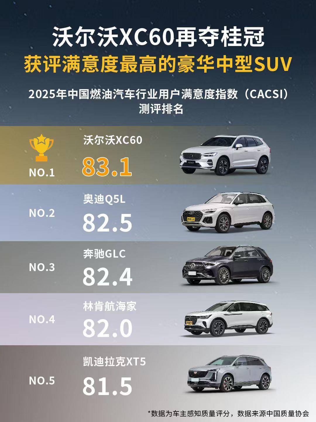 近日,中國質(zhì)量協(xié)會公布了2025年中國燃油汽車行業(yè)用戶滿意度指數(shù)(CACSI)測評結(jié)果。在這場覆蓋全國35家汽車生產(chǎn)企業(yè)、41個品牌的激烈角逐中,沃爾沃汽車憑借卓越表現(xiàn)脫穎而出,不僅連續(xù)兩年蟬聯(lián)“豪華品牌售后服務(wù)滿意度第一名”,旗下明星車型沃爾沃XC60更以全維度領(lǐng)先優(yōu)勢摘得“豪華中型SUV滿意度第一名”。這兩項殊榮的獲得,既是對沃爾沃品牌價值的高度認(rèn)可,也體現(xiàn)了用戶對產(chǎn)品與服務(wù)品質(zhì)的深度信賴。