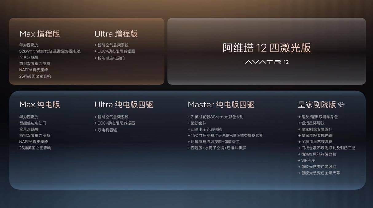 阿維塔12四激光版近日在重慶旁觀者設計博物館開啟預售,以“十項全新升級”與“十二項同級獨享”的配置組合,搭配限時預售權益,正式向30萬級豪華轎車市場發起沖擊。新車通過智能科技、豪華座艙與動力系統的全面革新,為消費者帶來兼具科技感與舒適性的出行體驗。