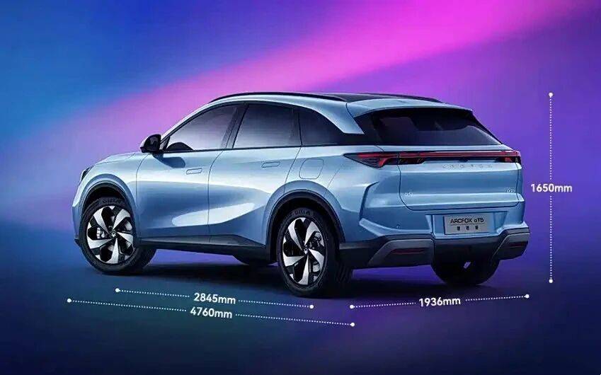 來到車身側面,新車展現出強烈的動感。隱藏式門把手的設計不僅提升了整車的科技感,還降低了風阻。俯沖式的腰線讓車身看起來更加修長,搭配多幅式輪轂,進一步凸顯了運動氣息。在車身尺寸方面,新車長寬高分別為4760/1936/1650mm,軸距為2845mm,為車內乘客提供了寬敞的乘坐空間。