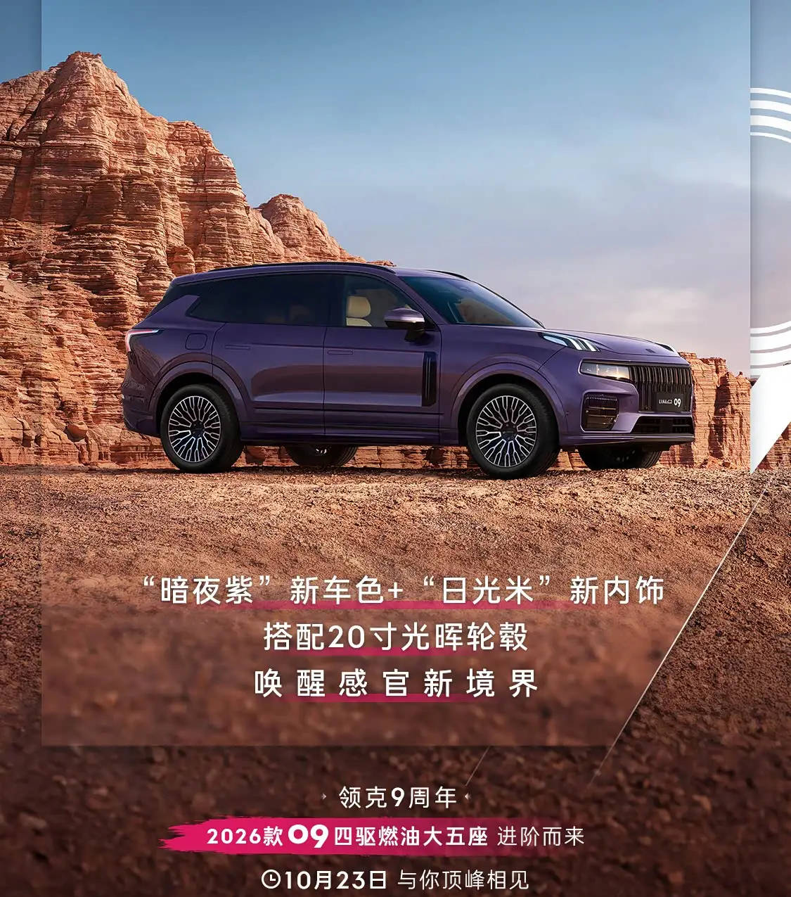 領克09 MHEV四驅探索版10月23日上市,暗夜紫車色+日光米內飾成亮點