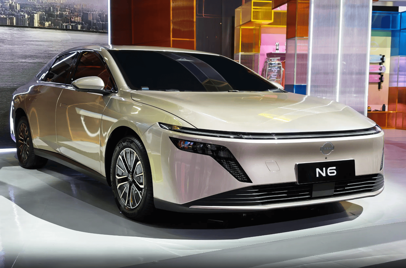 在設計語言上,N6與天籟、軒逸等傳統日產車型形成鮮明差異。前臉采用極簡風格,貫穿式燈帶兩側點綴獨特“小獠牙”裝飾,車身側面線條簡潔,搭配隱藏式彈出門把手,整體造型更符合新能源車型的審美趨勢。尾部設計同樣簡約,貫穿式尾燈與三廂布局兼顧實用性與空間表現,避免了夸張的轎跑風格,確保后排頭部空間與后備箱容積。