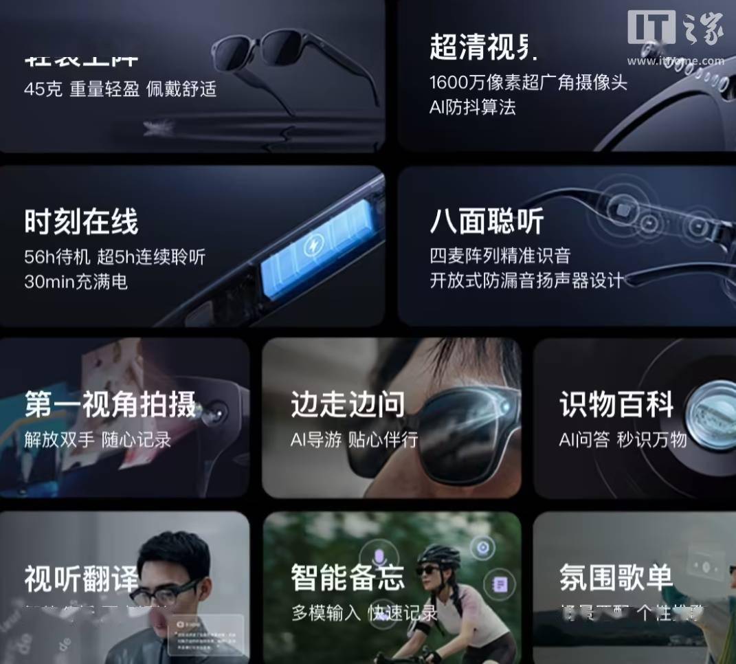 硬件配置方面,該設備采用輕量化設計,整機重量控制在45克,佩戴舒適度顯著提升。續航系統經過優化,滿電狀態下可實現56小時待機,連續音樂播放時長超過5小時,充電接口支持30分鐘快速補能。相比前代產品,此次升級重點強化了移動場景下的實用性,從拍攝記錄到即時查詢,從健康管理到跨語言溝通,形成完整的智能生態閉環。
