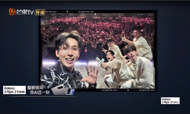在科技產品高度同質化的今天,傳統營銷依賴的“參數至上”模式逐漸失效。三星與《披荊斬棘4》的深度合作,以“場景共生”為核心,將硬核科技融入節目內容。通過五場公演的“有AI火力揭曉環節”,三星將產品功能轉化為儀式化體驗。比如,用三星手機遠程揭曉獲勝部落、以9臺三星Galaxy Z Fold6拼合實現動態滾屏,以及設計巨型星星裝置等環節,有效消解了科技產品的冰冷感,讓技術成為節目敘事的有機組成部分,與用戶建立起更深的情感紐帶。