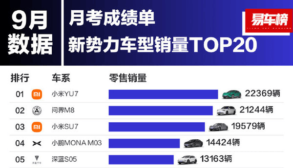 從今年1月至9月的交付數據來看,小米汽車呈現持續攀升態勢。9月單月交付量達到41948輛,創下月度新高;前九個月累計交付量則達到266722輛。值得注意的是,在9月新勢力品牌車型銷量排行榜中,小米YU7以22369輛的成績摘得桂冠,同期小米SU7交付19579輛位列第三。