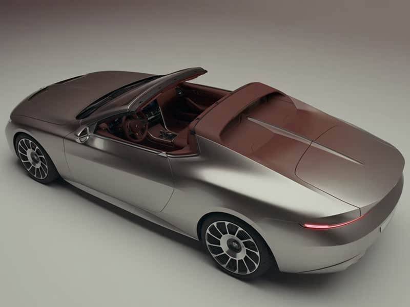 從外觀設計來看,Skytop概念車以雙門敞篷造型亮相,車身線條流暢且修長,盡顯優雅氣質。車頭部分采用極具運動感的sharknose風格設計,向前突出的造型賦予車輛強烈的視覺沖擊力。標志性的雙腎格柵采用寶馬最新設計語言,兩側LED大燈組造型獨特,辨識度極高。發動機艙蓋中部兩條隆起的筋線,進一步強化了車輛的力量感。車身側面,隱藏式門把手與腰線完美融合,呈現出簡潔而動感的視覺效果。車尾部分,狹長且優雅的長尾設計搭配小鴨尾,尾燈采用犀利的細長造型,同時配備雙邊共兩出式排氣布局,為整車增添了濃郁的運動氛圍。