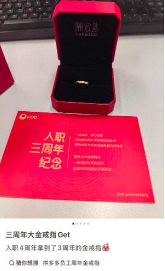 近日,電商巨頭拼多多因向員工發(fā)放極具分量的周年紀(jì)念禮引發(fā)網(wǎng)絡(luò)熱議。據(jù)多位網(wǎng)友在社交平臺(tái)分享,適逢公司成立十周年之際,拼多多為不同司齡的員工定制了差異化黃金禮品,其中入職滿十年的員工收到的"金雞"紀(jì)念品重量達(dá)100克,引發(fā)廣泛關(guān)注。