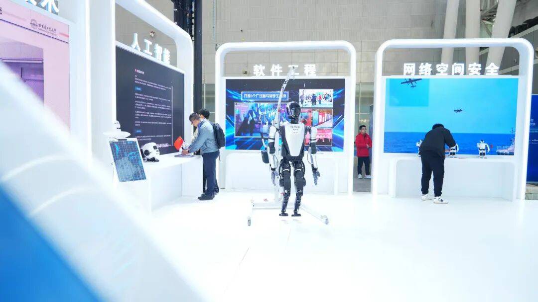 互動(dòng)體驗(yàn)區(qū)成為本次展覽的亮點(diǎn)之一。MR理化生數(shù)智實(shí)驗(yàn)空間通過空間深度算法,將虛擬實(shí)驗(yàn)器材融入現(xiàn)實(shí)環(huán)境,學(xué)生可親手操作虛擬實(shí)驗(yàn)設(shè)備,沉浸式體驗(yàn)科技魅力;機(jī)器人活動(dòng)區(qū)則展示了雙足機(jī)器人的實(shí)體化應(yīng)用,觀眾可通過對(duì)話、指令與機(jī)器人互動(dòng),感受其日益逼近人類的智能水平;AI棋藝競(jìng)技場(chǎng)內(nèi),“下棋機(jī)器人”融合傳統(tǒng)棋類與智能算法,觀眾可與自適應(yīng)難度的AI對(duì)弈,體驗(yàn)人機(jī)博弈的樂趣;AI音樂互動(dòng)區(qū)則提供歌曲創(chuàng)作、音樂MV制作、歌曲改編等服務(wù),觀眾只需與AI Agent對(duì)話即可完成個(gè)性化創(chuàng)作。