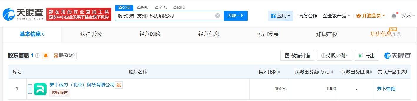 股權(quán)結(jié)構(gòu)方面,航行銳啟(蘇州)科技有限公司由蘿卜運(yùn)力(北京)科技有限公司全資控股。值得注意的是,蘿卜運(yùn)力(北京)科技有限公司是知名自動(dòng)駕駛企業(yè)蘿卜快跑的關(guān)聯(lián)公司,這一背景為新成立的企業(yè)增添了行業(yè)關(guān)注度。