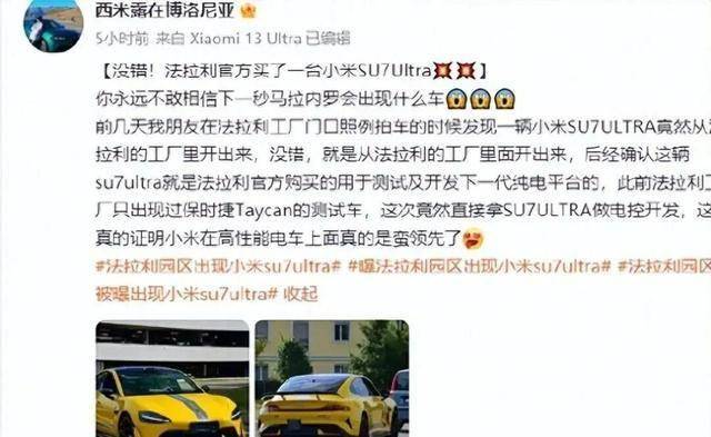 意大利馬拉內羅法拉利工廠外,一輛帶有小米標識的SU7 Ultra引發了廣泛關注。據內部消息人士透露,這輛由法拉利官方采購的車輛,正被用于下一代純電平臺的研發測試。這一舉動標志著傳統超跑巨頭在電動化轉型中的關鍵動作,也折射出全球汽車產業格局的深刻變化。
