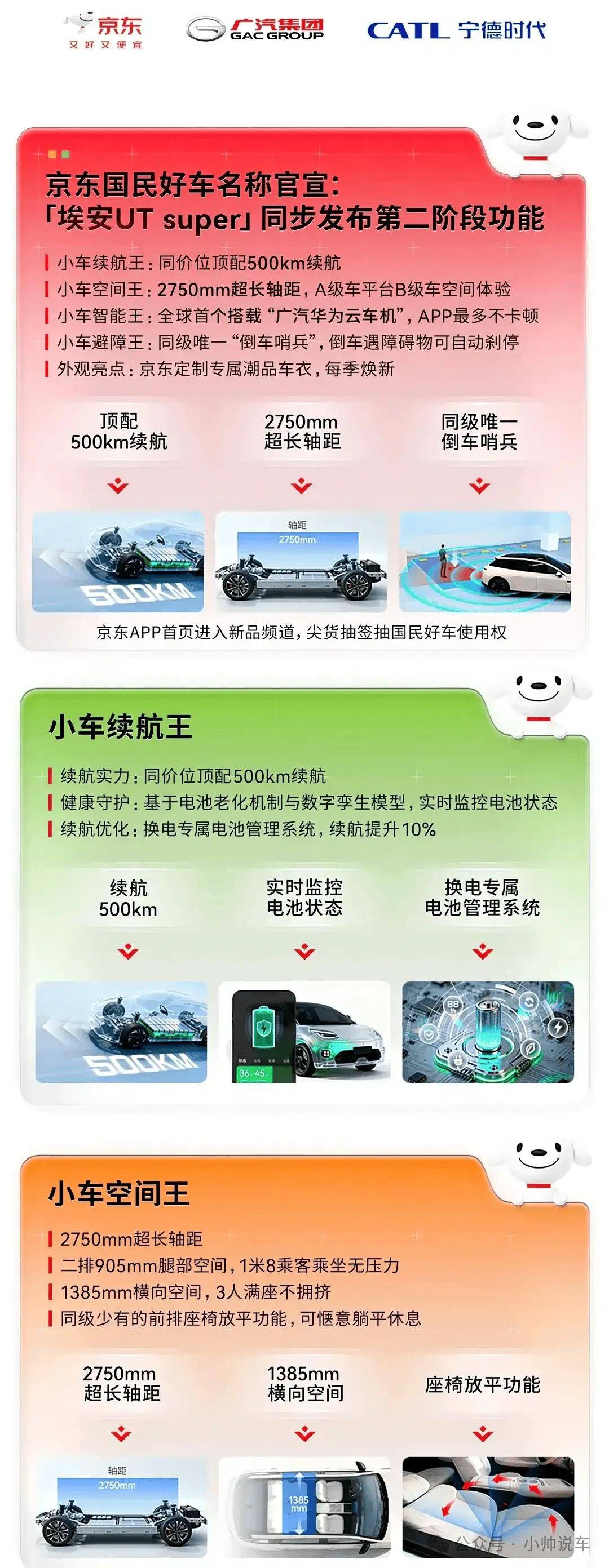 廣汽集團聯合京東與寧德時代,共同推出了一款全新純電小型車——埃安UT super,這款車以“國民好車”為定位,不僅是一次產品創新,更預示著新時代出行方式的變革。