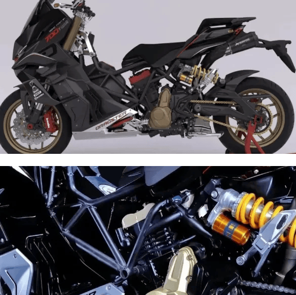 錢江品牌此次帶來兩款重磅產(chǎn)品。450cc運(yùn)動(dòng)踏板車配備直列雙缸發(fā)動(dòng)機(jī)與鏈條傳動(dòng)系統(tǒng),自動(dòng)擋設(shè)計(jì)讓操作更簡(jiǎn)便。其犀利的前臉造型與豐滿的車身線條,彰顯運(yùn)動(dòng)氣質(zhì)。另一款700cc運(yùn)動(dòng)踏板車則搭載693cc直列雙缸發(fā)動(dòng)機(jī),六檔變速箱可實(shí)現(xiàn)190km/h的最高時(shí)速,骨感的車身設(shè)計(jì)凸顯速度感。