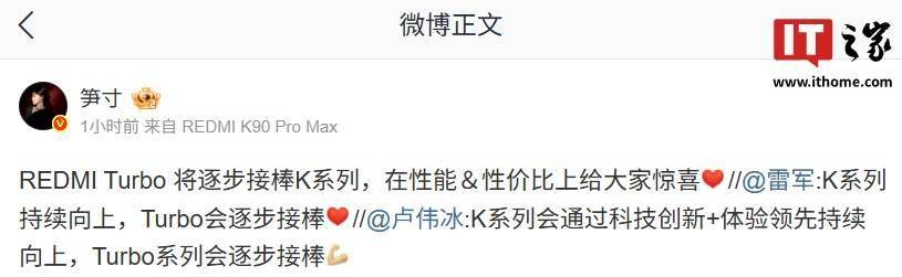 小米集團(tuán)高層對(duì)K系列與Turbo系列的未來(lái)布局給出了明確方向。小米集團(tuán)合伙人、總裁盧偉冰在社交媒體上發(fā)文指出,K系列將繼續(xù)通過(guò)科技創(chuàng)新和體驗(yàn)優(yōu)化實(shí)現(xiàn)向上突破,而Turbo系列則會(huì)逐步接過(guò)接力棒,承擔(dān)起新的市場(chǎng)使命。小米創(chuàng)辦人、董事長(zhǎng)兼CEO雷軍也表達(dá)了類似的觀點(diǎn),強(qiáng)調(diào)K系列的持續(xù)進(jìn)步和Turbo系列的逐步崛起。