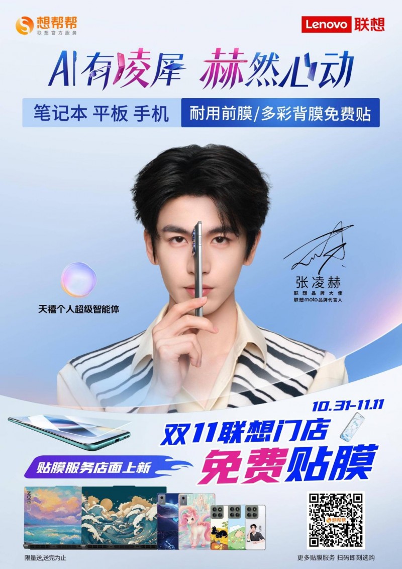 更有“聯想品牌大使”張凌赫代言助陣,為本次貼膜活動帶來更多誘人福利與視覺驚喜——限量張凌赫定制款貼膜已悄然到達門店,專為粉絲量身設計,不僅貼合屏幕保護愛機,更能貼進你的心動瞬間!“AI有凌犀,赫然心動”,不僅是一句口號,更是一份貼心服務的承諾。如果你也想給設備換個新顏,又不想在貼膜這件事上踩雷,那這個雙十一,不妨直接鎖定聯想服務門店:貼得好看,也貼得安心。