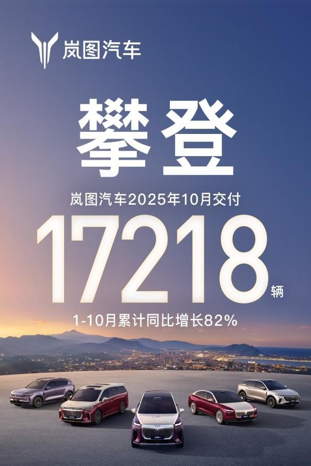 近期,嵐圖汽車憑借亮眼的市場表現引發廣泛關注。數據顯示,其10月交付量達17218輛,實現連續9個月銷量增長,1-10月累計銷量同比增幅達82%。這一成績背后,是嵐圖旗下多款車型在細分市場的強勢突破。