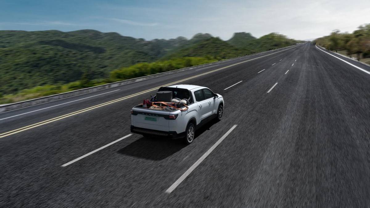 經濟性與安全性的雙重保障,則展現了電混技術的深層優勢。滿油滿電狀態下超過1000公里的綜合續航,讓長途運輸無需頻繁尋找充電樁;NEDC工況下1.5L/100km的超低油耗,相比同級燃油皮卡每年可節省數萬元燃油成本。車身結構方面,70%高強度鋼的使用使扭轉剛度提升30%,配合10毫米厚的電池護甲,即使行駛在碎石路、坑洼路等惡劣路況,也能有效保護核心部件。One-Box集成制動系統的加入,更確保了滿載狀態下剎車距離縮短15%,為重載運輸提供了可靠的安全保障。