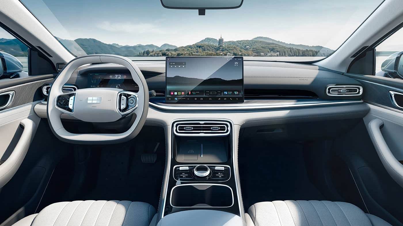 新車提供沁釉藍(lán)、絲錦銀、脂玉白、曜變黑、硯染灰五種外觀配色,以及澄湖映雪白、蘇堤暖棕、煙雨墨黛三種內(nèi)飾主題。內(nèi)飾采用銀河家族式設(shè)計語言,配備10.2英寸嵌入式液晶儀表、14.6英寸懸浮式中控屏、雙輻平底方向盤和懷擋式換擋機構(gòu)。智能座艙系統(tǒng)搭載7nm龍鷹一號芯片,支持Flyme Link、Hicar、Carlink手車互聯(lián)功能,高德810導(dǎo)航系統(tǒng)新增車道級視覺引導(dǎo)、巡航紅綠燈提示等實用功能。