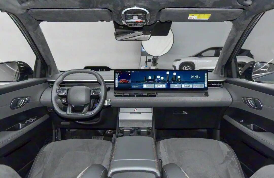 內(nèi)飾空間展現(xiàn)高品質(zhì)工藝。環(huán)抱式座艙提供灰綠與黑灰雙色選擇,大面積仿麂皮材質(zhì)覆蓋帶來柔軟觸感。27英寸4K超薄寬幕顯示屏集成高通驍龍8295芯片,支持全屏游戲和多APP應(yīng)用,下方儲物槽可容納手機錢包等物品。賽博之眼前景顯示系統(tǒng)突破傳統(tǒng)HUD設(shè)計,不受環(huán)境光干擾且不遮擋視線。中島區(qū)域配備雙無線充電面板和水杯架,后排抽屜式儲物格與B柱出風(fēng)口設(shè)計凸顯人性化考量。