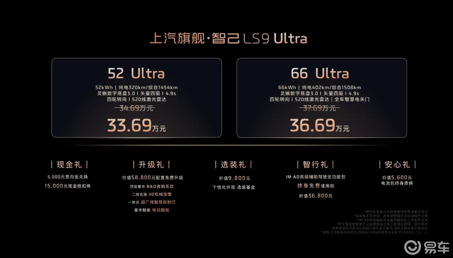 上汽集團旗下高端智能電動車品牌智己汽車,近日正式推出全新旗艦大六座SUV——智己LS9,并同步開啟預售。作為上汽集團70年造車經驗的集大成之作,這款新車以“全系皆Ultra”的配置理念入市,推出52 Ultra版和66 Ultra版兩個增程版本,預售權益價分別為33.69萬元和36.69萬元,攜多項全球領先科技亮相市場。
