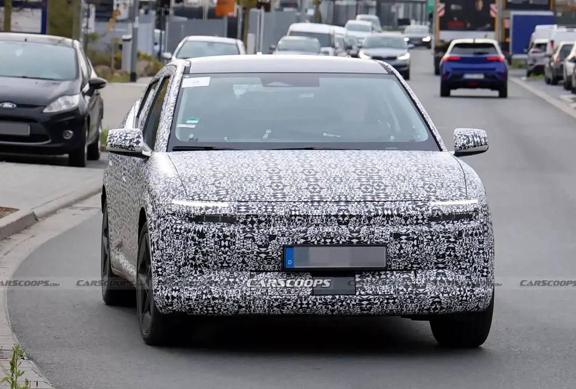 從諜照中可以看出,盡管新車被嚴(yán)密的偽裝車衣所覆蓋,但其整體造型已經(jīng)與概念車十分接近。車頭部分,新車采用了封閉式格柵設(shè)計(jì),上方是兩條纖細(xì)的分體式大燈,中央則有一條貫穿裝飾條,預(yù)計(jì)將配備LED光源以提升車輛的辨識(shí)度。下包圍部分雖然被嚴(yán)密覆蓋,但根據(jù)設(shè)計(jì)推測(cè),可能會(huì)配備扁平的通風(fēng)口以幫助電池散熱。