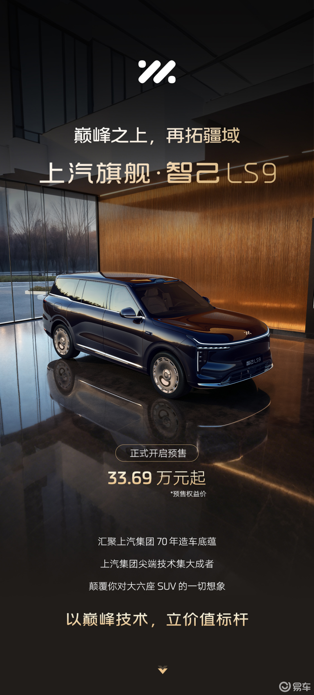 智己汽車(chē)旗下全新大型SUV——LS9正式開(kāi)啟預(yù)售,此次共推出兩款配置車(chē)型,預(yù)售價(jià)區(qū)間為34.69萬(wàn)至37.69萬(wàn)元。新車(chē)憑借創(chuàng)新設(shè)計(jì)與前沿科技配置,迅速成為市場(chǎng)關(guān)注焦點(diǎn),預(yù)售開(kāi)啟30分鐘內(nèi)訂單量已突破8000臺(tái)。