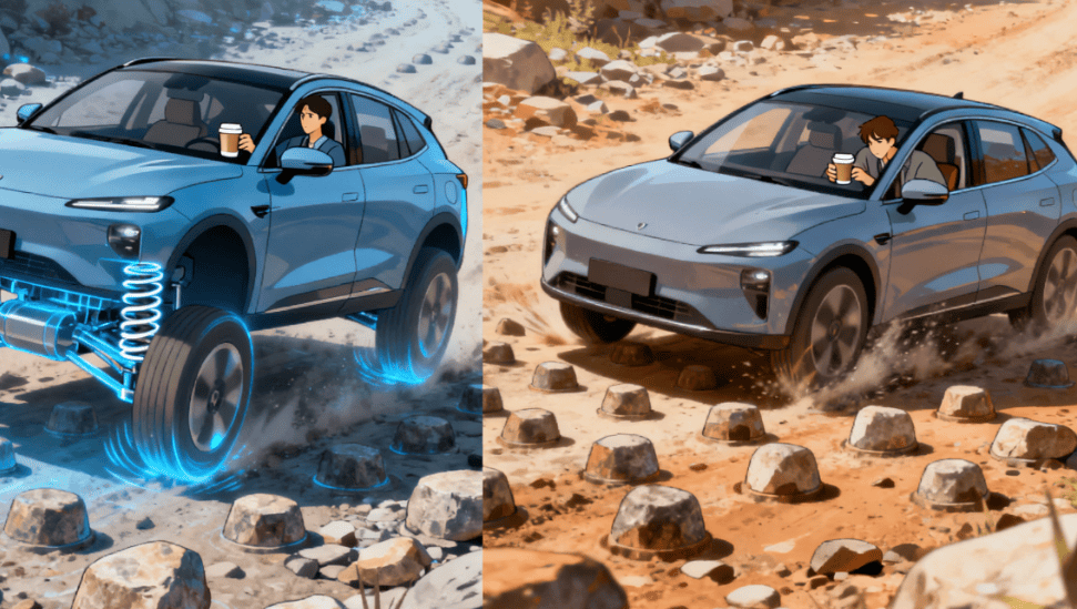 最近借了輛配備全主動底盤的電動車,開了兩周多,正趕上老家修路,那段布滿坑洼的路段成了天然的試車場。原本對這類新技術的體驗沒抱太大期待,畢竟此前開燃油車走同樣的路,要么得龜速挪動,要么顛簸得讓人直皺眉。