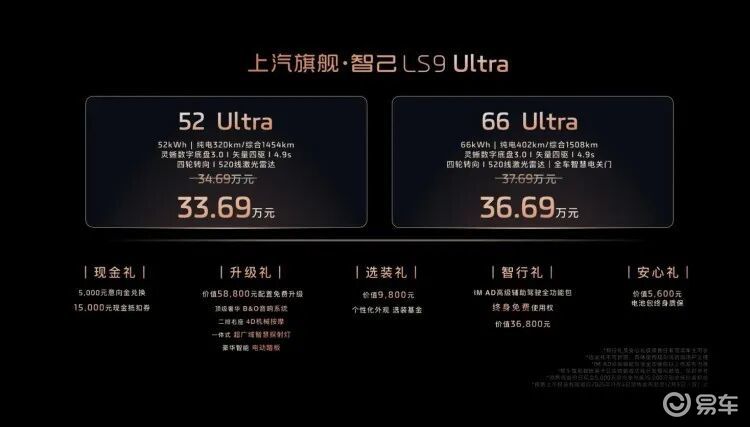 新車采用1.5T渦輪增壓發(fā)動機搭配前后雙電機的增程式動力系統(tǒng),綜合輸出功率達390千瓦,峰值扭矩670牛·米,實現(xiàn)4秒級零百加速。電池組提供52kWh和66kWh兩種容量選擇,CLTC工況下純電續(xù)航最高402公里,綜合續(xù)航里程可達1508公里。全系標配的800V碳化硅平臺支持10分鐘補能150公里,有效緩解里程焦慮。