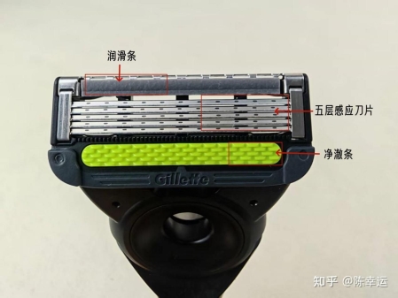 知乎答主“衛小妖”分享了他的觀察:“我注意到刀頭前面有一條綠色的凈澈條,使用時能感覺到它在清除皮膚表面的油脂,就像用吸油紙一樣,讓后續刀片刮得更順暢。而刀片后面的潤滑條遇水后非常滑,能形成明顯的保護層,即使刮第二遍也很順滑,沒有干澀的摩擦感。”