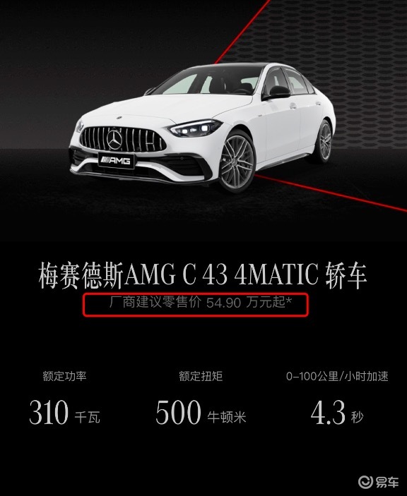 2026款AMG C 43官降6.62萬上市 動力不變配置或有調整