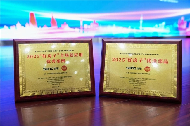 隨后,在城市更新助力“好房子”高質量發展應用交流會暨城市更新應用標準化技術委員會成立大會上,森歌再添兩項國家級重量級榮譽——2025“好房子”優選部品與2025“好房子”全場景應用優秀案例,實現了從“展品”到“標桿”的跨越。
