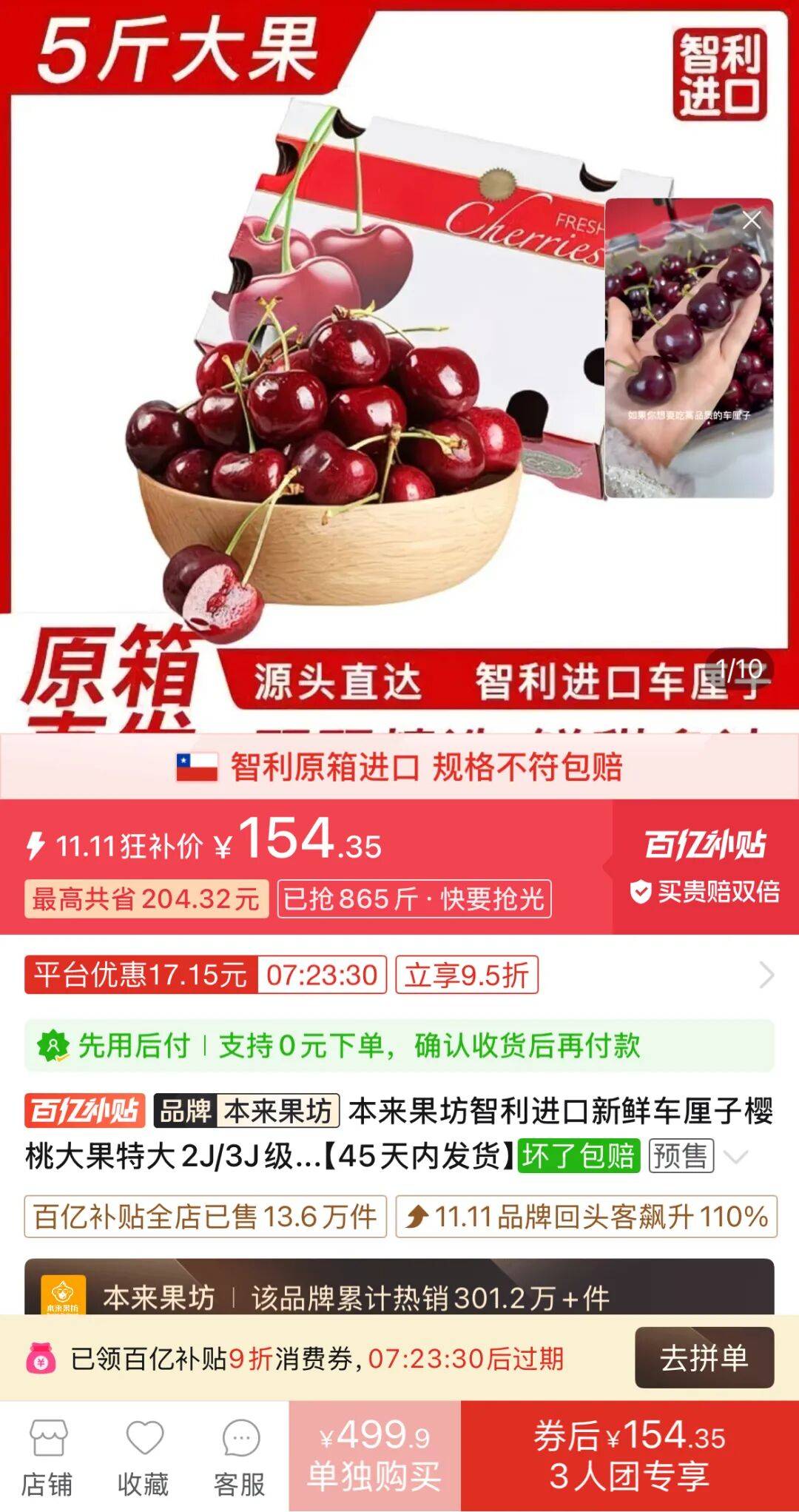 為了確保車厘子的品質,拼多多與多個高質量生鮮品牌展開了深度合作,深入智利原產地,從源頭把控車厘子的品質。目前,拼多多百億補貼頻道已上線“智利原箱進口”標識,讓消費者能夠更加放心地購買。在平臺的大力補貼下,5斤智利原箱車厘子的價格更是低至154.3元,引發了消費者的搶購熱潮。