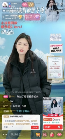 目前,駱駝正以羽絨服為主打,在快手探索全品類的自播銷售。隨著冬季深入,品牌計劃上架更具保暖性能的軟殼衣褲等單品,并逐步拓展至春夏戶外系列,確保全年貨盤的持續活力與市場競爭力。