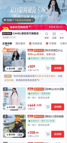 單款羽絨服兩日爆賣千萬,駱駝快手雙11如何將品牌力轉為購買力?