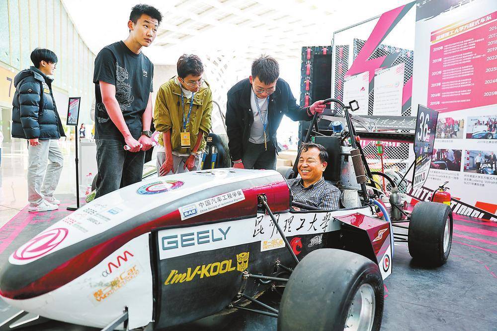 在車展現(xiàn)場(chǎng),一款由昆明理工大學(xué)KMUST方程式車隊(duì)獨(dú)立設(shè)計(jì)、制造并調(diào)試的方程式賽車格外引人注目。這款賽車不僅展現(xiàn)了昆明理工大學(xué)在汽車工程領(lǐng)域的深厚實(shí)力,也體現(xiàn)了年輕學(xué)子們對(duì)汽車科技的無限熱情和創(chuàng)造力。市民們紛紛駐足觀看,甚至有機(jī)會(huì)親身體驗(yàn)這款賽車的獨(dú)特魅力。