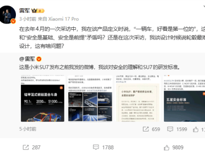 針對網友“前后表述矛盾”的質疑,雷軍解釋稱,2024年4月專訪中提到的“顏值優先”,僅針對產品設計層面的優先級排序,而非否定安全的重要性。他比喻道:“設計一款車如同建造一座房子,美觀是外在呈現,但結構安全才是根基,兩者缺一不可。”他批評部分網絡言論存在斷章取義現象,并呼吁行業抵制“水軍”和“黑公關”,共同維護健康輿論環境。