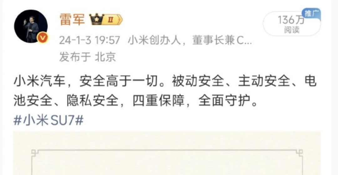 根據雷軍公布的截圖內容,早在2023年12月,他便多次強調小米汽車的安全標準。例如,在12月28日的動態中,他提到小米SU7采用鋼鋁混合車身,高強度鋼與鋁材占比超過90%,其中最高強度達2000MPa;同日另一條動態中,他指出電池作為電動車核心部件,小米同樣以嚴苛標準進行設計。2024年1月,他進一步補充稱,小米汽車的安全體系涵蓋被動安全、主動安全、電池安全及隱私安全四大維度,并按照C-NCAP 2024版、E-NCAP 2023版及C-IASI 2023版三大權威標準進行研發,目標均為五星或3G+優秀評級。