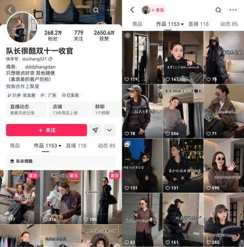 從拿貨轉向自制模式,隊長很酷的產品品質和貨源保障實現了第一次跨越式升級。2025年,張丹看到了快手平臺上大量高消費力客群背后的高端市場商機后再次升級,從中端轉向高端女裝路線,以獨特性、高品質產品,快速拉高客單價和利潤空間,降低售后時間成本。