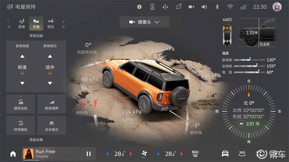 在越野性能方面,福特智趣烈馬傳承硬核基因,是同級唯一配備前后電控機械差速鎖的方盒子新能源SUV,全系標配四驅,增程版更支持行進中上鎖且不限速。其越野360系統通過激光雷達、360°攝像頭及70英寸AR-HUD抬頭顯示,實時感知車身姿態并預警風險,大幅提升安全性。智能旅行路書功能可推薦沿途興趣點、最美拍攝地甚至無人機拍攝點,并支持語音播報與車身攝像頭聯動記錄,讓每一次探索都充滿驚喜。