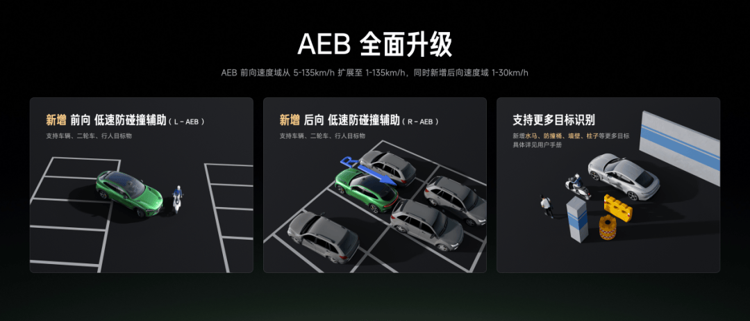 此次更新還引入了緊急轉(zhuǎn)向輔助(AES)功能,進(jìn)一步拓展了極端場(chǎng)景下的避險(xiǎn)能力。當(dāng)車速處于80-135km/h區(qū)間且前方突發(fā)障礙物時(shí),系統(tǒng)會(huì)優(yōu)先嘗試通過AEB制動(dòng)避險(xiǎn)。若判斷全力制動(dòng)仍無法避免嚴(yán)重碰撞,且周邊具備充足避讓空間,AES將啟動(dòng)橫向轉(zhuǎn)向輔助,幫助車輛規(guī)避風(fēng)險(xiǎn)。該功能覆蓋行人、車輛、二輪車等常規(guī)目標(biāo),同時(shí)對(duì)逆向車輛、橫向入侵物體及摔倒的二輪車等高危場(chǎng)景也具備主動(dòng)避讓能力。