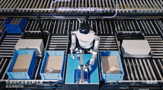 瞄準響應市場對“柔性揀選”的需求,具身智能企業星動紀元聯合合作伙伴推出 “具身智能物流倉儲解決方案” —— 將全尺寸雙足人形機器人星動L7及自研具身大腦ERA-42部署于“貨到人”揀選環節,是全球首次端到端VLA具身模型在物流倉儲場景真實落地應用,并在2025亞洲最大展會CeMAT ASIA中首次展示了“具身物流”物流倉儲解決方案。