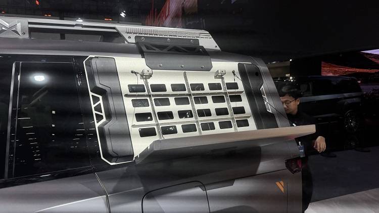 這款車的機械素質堪稱"暴力美學"的典范。基于猛士智能越野架構M TECH開發,系統綜合功率達到505kW,扭矩輸出848N·m,動力表現直逼6.0T發動機。底盤配置更是誠意滿滿:全鋁非承載式車身、雙叉臂獨立懸架、空氣懸架(支持高度調節)、后輪轉向系統以及蟹行模式,這些通常出現在百萬級車型上的配置,如今出現在30萬級市場。