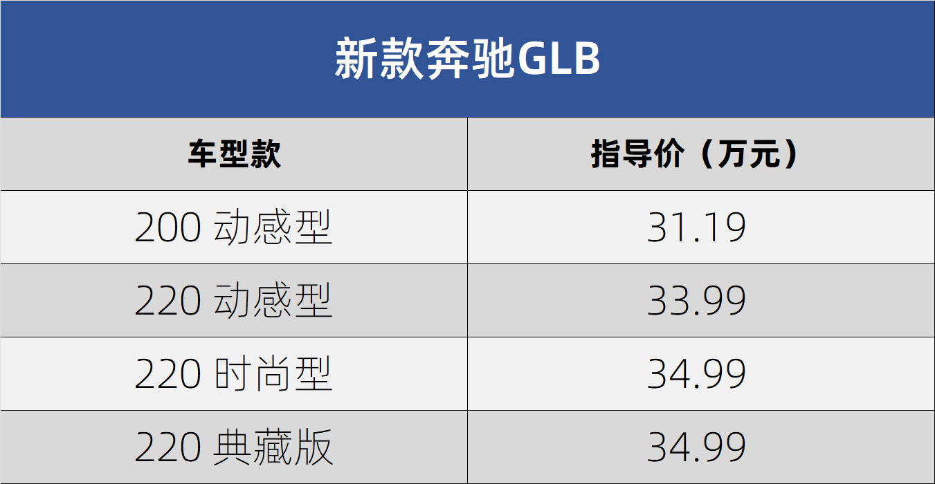北京奔馳近日宣布,全新改款的奔馳GLB正式登陸市場。此次上市的新車在配置和車型選擇上進行了優化調整,取消了四驅版本,官方指導價區間設定為31.19萬元至34.99萬元。