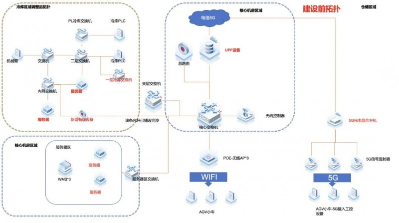廠區內同時存在Wi-Fi和5G兩套無線網絡。由于歷史原因,不同品牌的AGV小車采用不同的通信模塊——有的支持Wi-Fi,有的支持5G。5G的網絡技術要求高,需要專業運營商的運維人員支持,年久失修,經常出現網絡問題,而修復的辦法,往往是等待網絡自動重連,或是工人手動插拔SIM卡,治標不治本,無法滿足企業的業務發展。