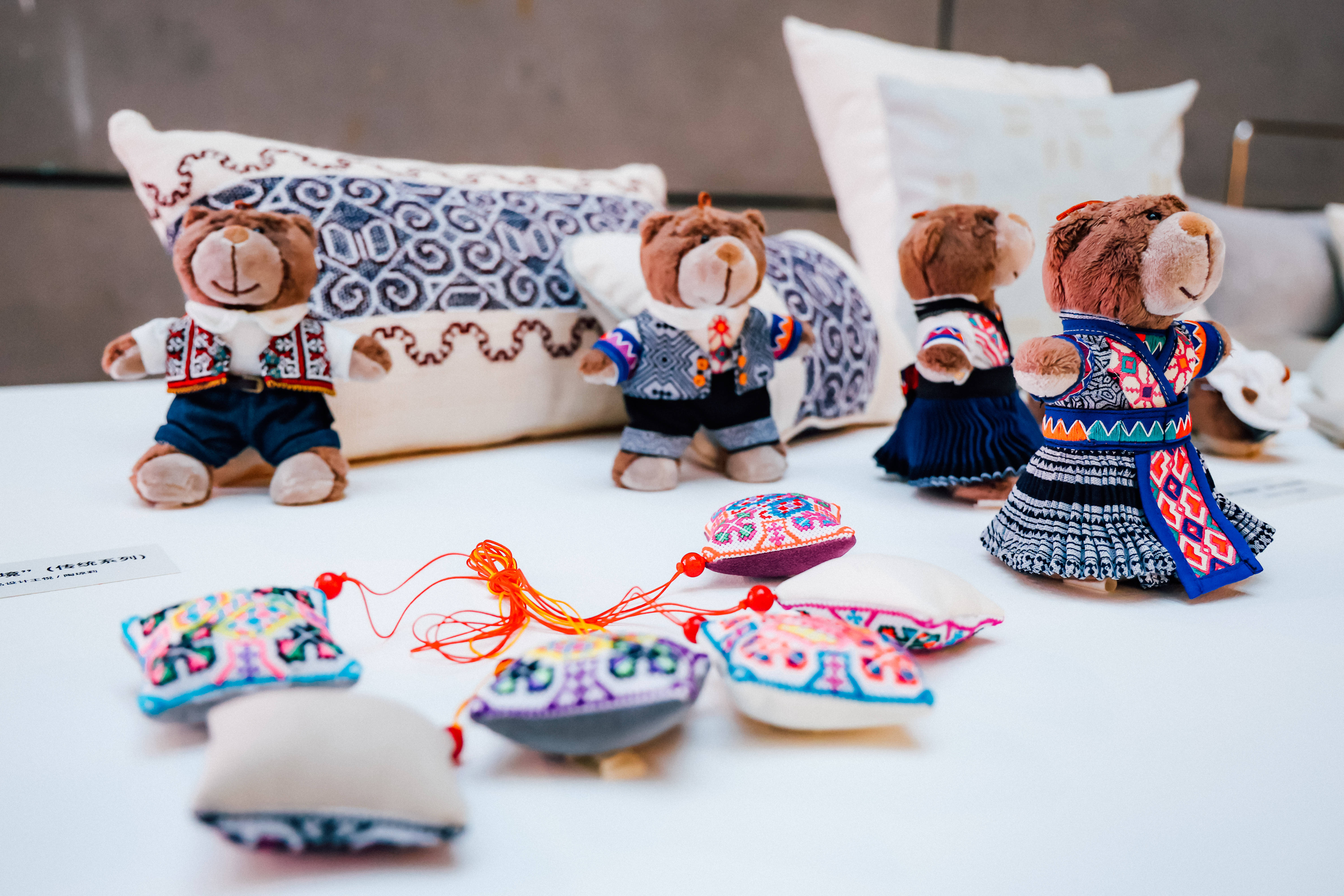 另一邊,來自云南大山里的苗繡非遺傳承人也與清美教授聯手,推出了“織夢馭繡”非遺文創品系列。這一系列涵蓋了服飾、家居、車載、配飾、玩偶等多個品類,以苗繡、蠟染及苗族服飾的復原與提取為核心設計元素,打造出苗繡BAVA熊專屬IP。德國巴伐利亞的BAVA熊,身著融合寶馬“雙腎格柵”設計元素的苗繡服飾,以萌趣的形象成為文化交流的使者,聯結起傳統與潮流的橋梁。