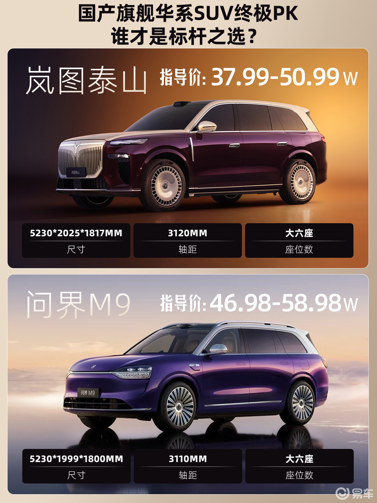 在豪華大六座SUV市場,嵐圖與問界兩大品牌近期展開了一場激烈交鋒。嵐圖全新旗艦SUV泰山以37.99-50.99萬元的定價區(qū)間入局,與同屬華為技術(shù)生態(tài)的問界M9形成直接競爭。兩款車型均搭載華為智能解決方案,但在技術(shù)細節(jié)與配置策略上呈現(xiàn)出差異化特征。