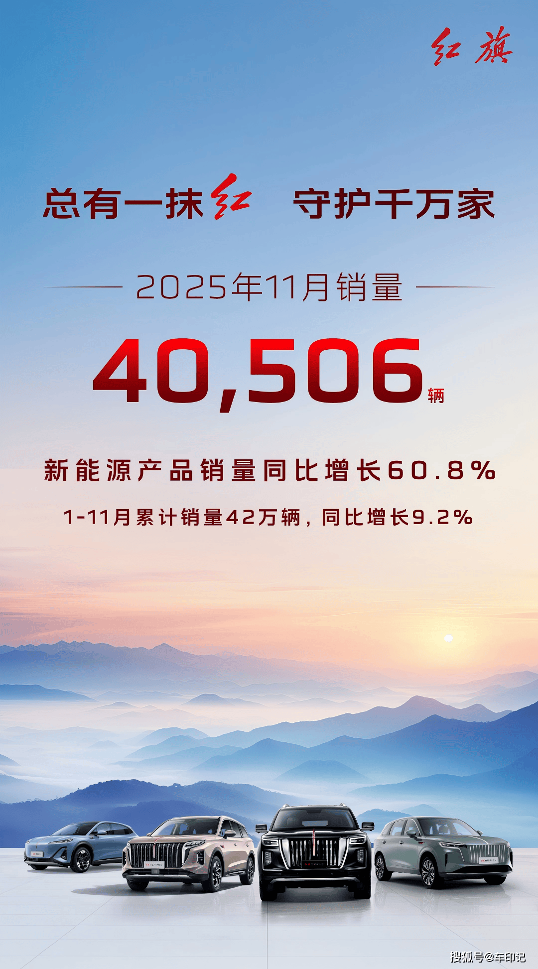 紅旗品牌近日公布最新市場成績,11月單月銷量突破4萬輛,延續穩健增長態勢。其中新能源產品表現亮眼,同比增長60.8%,成為推動品牌向上的核心引擎。1-11月累計銷量達42萬輛,同比增長9.2%,持續鞏固自主豪華品牌領先地位。這一成績的取得,得益于品牌在產品布局、技術突破和用戶運營三大維度的系統性創新。