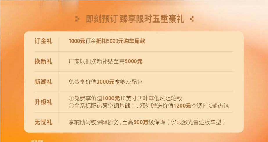 預(yù)售期間,歐拉5以“誠(chéng)意加碼”策略吸引消費(fèi)者:原“1000元訂金抵3000元購車尾款”權(quán)益升級(jí)為“1000元抵5000元”,且覆蓋前期已下訂用戶,有效期持續(xù)至上市發(fā)布會(huì)當(dāng)日。下訂用戶可享至高5000元廠家以舊換新補(bǔ)貼,以及塞納灰車漆、18英寸四葉草低風(fēng)阻輪轂、空調(diào)PTC輔熱包等價(jià)值超5000元的配置禮包。算上訂金禮后,激光雷達(dá)版本實(shí)際入手價(jià)僅需12.88萬元起,并附帶至高500萬級(jí)輔助駕駛保障服務(wù),這一組合拳在同價(jià)位車型中頗具殺傷力。