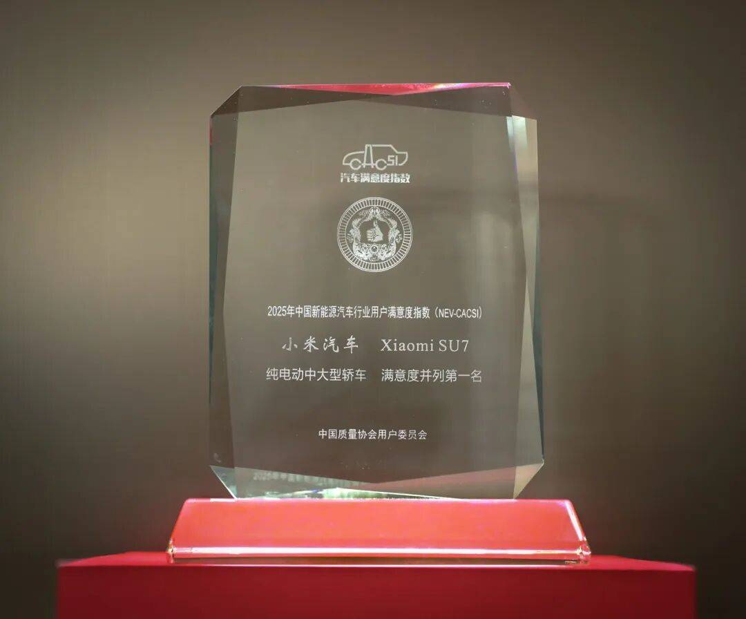 在中國質量協(xié)會最新公布的「2025年中國新能源汽車行業(yè)用戶滿意度指數(shù)」測評結果中,小米SU7憑借卓越表現(xiàn)脫穎而出,與另一品牌并列斬獲純電動中大型轎車類別用戶滿意度冠軍。這已是該車型連續(xù)第二年登頂權威測評榜單,去年曾以“市場關注新車(轎車類別)”身份摘得同項殊榮。